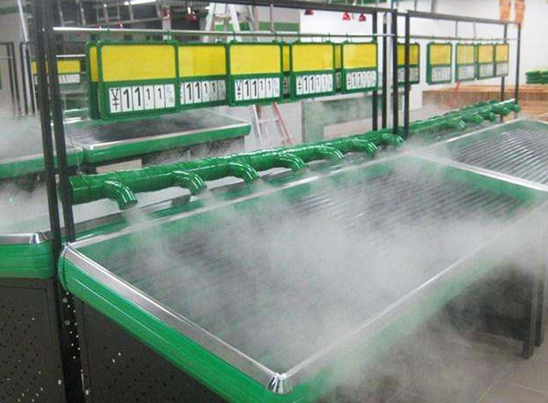 超市的蔬果等農產品對有效吸引客流有很大作用,也是生鮮區中最難經營管理的部門,其中,怎樣有效延長商品的貨架壽命并保持鮮度是重要的問題之一。超市的蔬菜水果是生鮮食品,對于水果和蔬菜來說,他們的保鮮需要注意三個方面:其一,可以采用低溫存放,盡量抑制呼吸作用,減少內部營養的損失。其二,可以使用抑菌劑,抑制細菌的生長,水果蔬菜腐爛。其三,保持一定的濕度,控制蒸騰作用,減少水分損失,保留新鮮的狀態。  在超市,蔬菜瓜果盡管色彩豐富,但由于起色素成分多數不穩定,極易受溫濕度等因素影響發生改變,影響瓜果蔬菜的色澤品質。而在各種大型超市冷凍柜中運用超聲波加濕系統可抑制蔬菜瓜果的呼吸作用,減少水份散失,降低代謝水平,保持蔬菜果瓜的色澤香味,抑制微生物繁殖,防止腐爛。日業 超聲波加濕器產生的水霧粒子只有1~5微米,容易被空氣吸收,空氣中的水分容易通過植物的根以及葉子表面的毛細管被吸收,提高新鮮度和質量。廣泛運用于超市產品:各種綠葉蔬菜、水果、鮮肉、生鮮貨架展示柜、冷藏展示柜、冷風柜、面包柜等等。