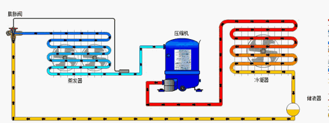 3、輸送并推動制冷劑在系統(tǒng)內(nèi)流動,完成制冷循環(huán)。