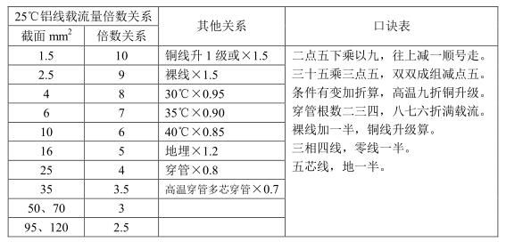 口訣:十下五,百上二,二五三五四三界,七零九五兩倍半,溫度八九折,銅材升級(jí)算。