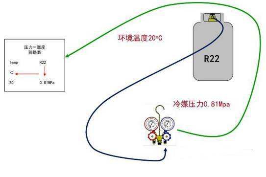 機房空調(diào)機組的充注量可在實驗室精確測定 ,然后根據(jù)現(xiàn)場情況進行適當修正 ,就可基本確定每一臺現(xiàn)場安裝的機房空調(diào)機組的充注量 ,然后據(jù)此可用稱重法將制冷劑充入機組。但此方法在實際應用中有兩個問題 ,有時機組的充注量的準確值不容易確定 ,有時現(xiàn)場不容易找到準確稱重的設備 ,此時只能用觀察壓力法進行制冷劑的充注。