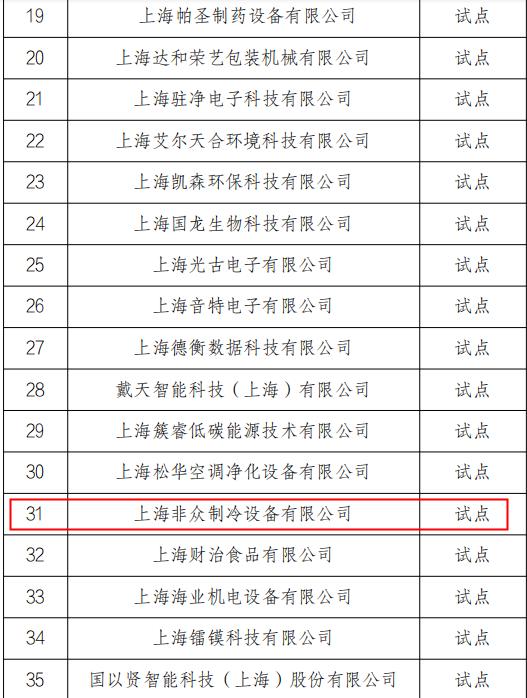 根據《松江區專利工作試點和示范企業認定與管理辦法》(松知局[2018]1 號),經自主申報、專家評審、區市場監管局班子會研究,擬認定上海非眾制冷設備有限公司等35家企業為 2022年度“松江區專利工作試點企業”。這標志著上海非眾一直堅持著高質量創新發展的道路上,發揮了較好的示范作用。