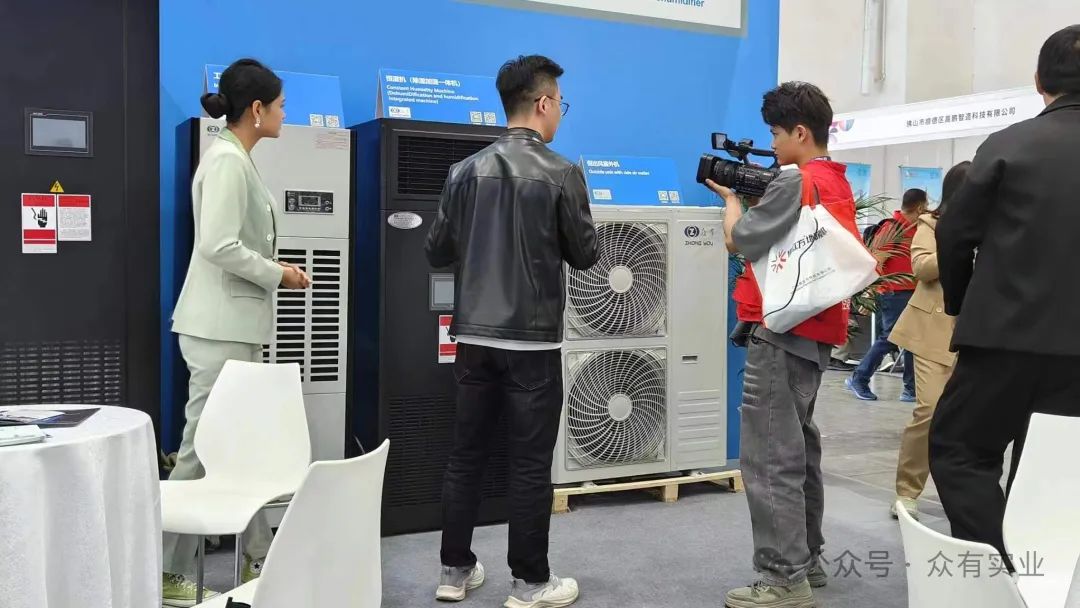 本次展覽中,眾有實業展示了多款創新產品,包括工業除濕機、機房精密空調機組、凈化型直膨式變頻恒溫恒濕機組以及恒濕機(除濕加濕一體機),充分展現了公司在制冷領域的強大研發實力和創新能力。
