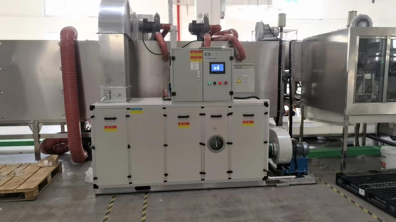 該組合式轉輪除濕機組同時能根據用戶需求進行溫度、濕度的調節,滿足各軟膠囊生產需要。亮點是防止機組運行過低濕度導致,軟膠囊過干變硬的措施,用戶在設置完參數后,機組圍繞設置參數進行運行,濕度到達用戶設定值時,機組的除濕功能進入節能待機狀態,當機組濕度超出用戶設置值時,機組除濕功能運行。可使用戶在無人的夜間也能正常運行及監控。