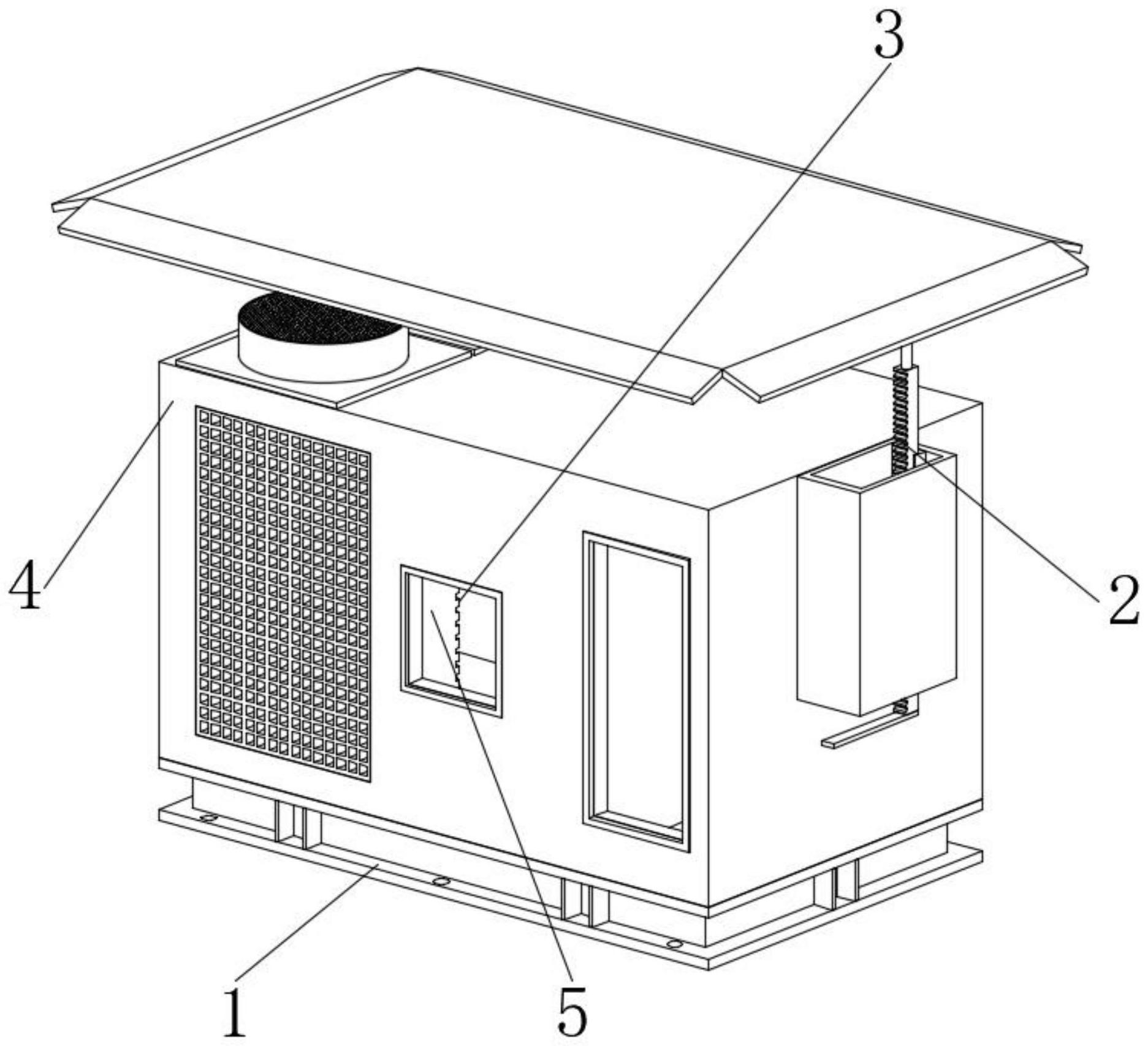 一體式的屋頂空調(diào)機(jī),專利號(hào):ZL 2024 2 0258431.7,涉及空調(diào)技術(shù)領(lǐng)域,而本實(shí)用新型包括槽鋼底座,槽鋼底座的頂端固定連接有空調(diào)機(jī)本體,空調(diào)機(jī)本體的內(nèi)部設(shè)置有散熱片,空調(diào)機(jī)本體的上內(nèi)壁設(shè)置有配合散熱片使用的清理組件,空調(diào)機(jī)本體的一端上部設(shè)置有防雨組件,防雨組件包括連接殼,連接殼的一端與空調(diào)機(jī)本體的一端上部固定連接,連接殼的一側(cè)內(nèi)壁固定連接有第一支座,第一支座的頂端固定連接有第一電機(jī),且第一電機(jī)的輸出端固定連接有第一錐齒輪,本實(shí)用新型通過(guò)設(shè)置防雨組件,起到便于使得空調(diào)機(jī)具有防水功能的作用,提高了空調(diào)機(jī)的實(shí)用性,通過(guò)設(shè)置清理組件,起到便于對(duì)空調(diào)機(jī)中的散熱片表面灰塵進(jìn)行清理的作用,提高了空調(diào)機(jī)的使用效果。